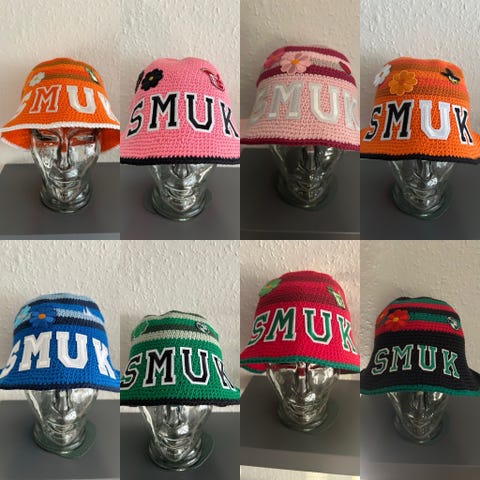 Puch hæklet bøllehat grøn hvid