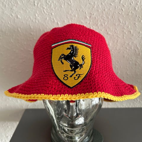 Puch hæklet bøllehat i grøn med hvide og sorte striber. Stor Puch-logoapplikation foran. Velegnet som tilbehør til Puch-knallert eller som fritidshovedbeklædning. Materialet fremstår som hæklet garn/strik. Unisex model.