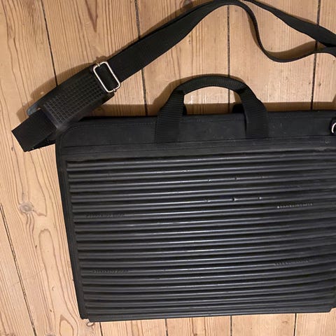 dokumentmappe i flot tidløst design. Sort skind. Incl. opbevaringspose. Brugt to gange - fremstår som helt ny. Kan afhentes i Farum eller København. Sendes også gerne.
