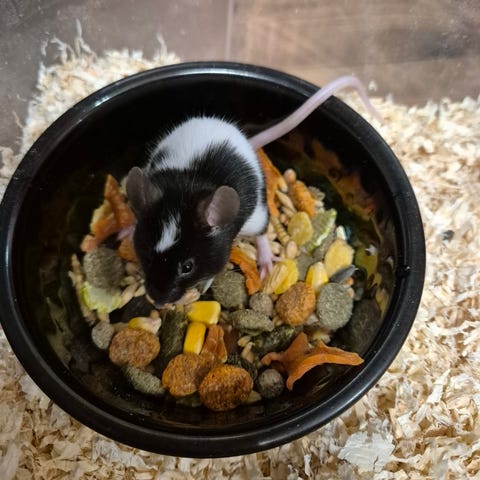 Han er meget nysgerrig og tillidsfuld, spiser fra hånden og klatrer gerne op på den.