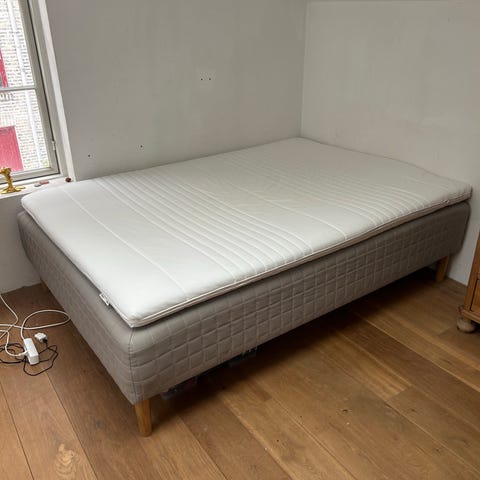IKEA Nyläget topmadras med aftageligt betræk. Madrassen har et struktureret, hvidt betræk med lynlås og måler 140x200 cm og passer godt til seng eller gæsteseng. Madrassen har kun været brugt meget sporadisk i 5 måneder, da vi er flyttet til mindre bolig. Ny pris er 2300kr, sælges for 1500kr. Næsten ny IKEA Neiden fyrretræsseng i str. 140x200cm sælges gerne sammen med madrassen (ikke et krav) og kan købes med for 200kr, ny pris er 519kr (skal samles). Begge dele bedes afhentes!
