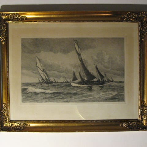 Tryk, Carl locher, motiv: Hav, b: 62,5 h: 48,5, Tryk/ plakat Carl locher, målene er ink ramme