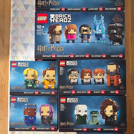LEGO BrickHeadz-samling med flere sæt i ubrugt stand, alt i uåbnede, integrerede originale æsker, fremstillet i Danmark af plast, i perioden 2010–2020, og inklusiv adskillige BrickHeadz-sæt som 41585, 41586, 41587, 1588, 41589, 41590, 41591, 41592, 41593, 41594, 41595, 41596, 41487, 41488, 41485, 41598, 41599, 41600, 41601, 41602, 41603, 40270, 40271, 40272, 40273, 40274, 41604, 41605, 41606, 41607, 41608, 41609, 41610, 41611, 41613, 41614, 41615, 41616, 41617, 41618, 41619, 41620, 41621, 41622, 41623, 41624, 41625, 41628, 41629, 41632, 40354, 40349, 40350, 40351, Klik på den blå "gå til varen" knap, for at købe eller byde på denne vare. Den samlede pris vil blive vist inden du afgiver dit bud.