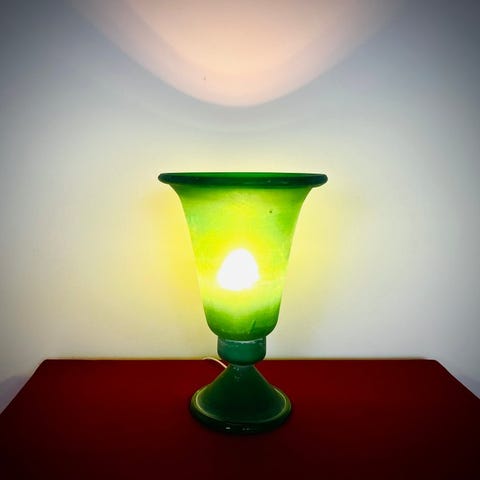 Murano-glas svampebordlampe, moderne stil, hvid, fremstillet i Italien af Murano-glas, maks. diameter 29 cm, basdiameter 22 cm, højde 41 cm, én fatning, fra 1980’erne, i god brugt stand og i funktionsdygtig stand. Klik på den blå "gå til varen" knap, for at købe eller byde på denne vare. Den samlede pris vil blive vist inden du afgiver dit bud.