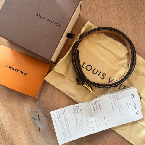 Louis Vuitton LV Cut Belt Multicolore Blanc 85/34, et læderbælte med monogram i hvidt, flerfarvet, rødt og guld, bælte størrelse 85, højde 4 cm og bredde 4 cm, fremstillet i Frankrig, med dustbag, i god stand med brugsspor. Klik på den blå "gå til varen" knap, for at købe eller byde på denne vare. Den samlede pris vil blive vist inden du afgiver dit bud.