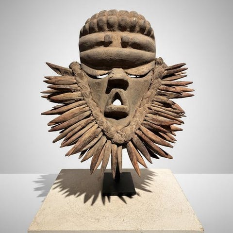 Dan-maske fra Elfenbenskysten, Dan-kulturen, fra privat samling. Klik på den blå "gå til varen" knap, for at købe eller byde på denne vare. Den samlede pris vil blive vist inden du afgiver dit bud.