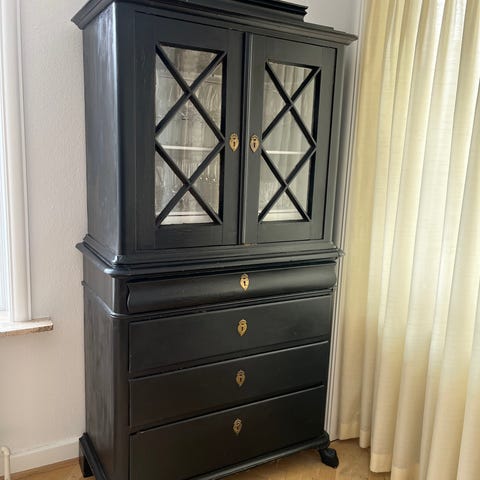 Møblet er strukturelt solidt, bronzestykkerne bevarer deres glans, og de ydre glas har ingen brud. Dog viser det synlige tegn på brug og slid gennem tiden, som er detaljeret i billederne.