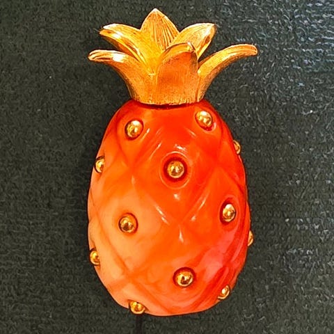 En raffineret vintage broche signeret Miriam Haskell, emblemisk for husets romantiske og barokke æstetik.