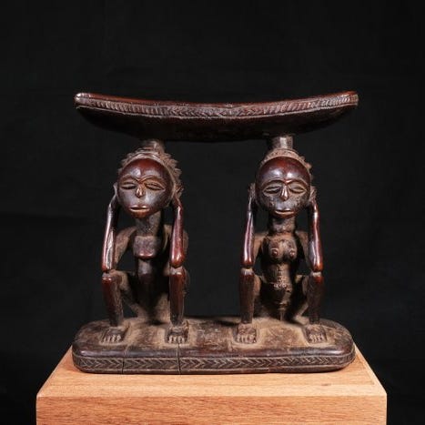 Træskåret etiopisk nakkestøtte fra 1930–1940, mål 25 × 17 × 18 cm, i god stand med aldersrelaterede slid, provenance: privat belgisk samling, solgt med autenticitetscertifikat. Klik på den blå "gå til varen" knap, for at købe eller byde på denne vare. Den samlede pris vil blive vist inden du afgiver dit bud.
