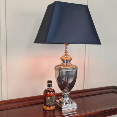To moderne bordlamper med en bronsefageret metalkredsfod, stofskærme i cylindrisk form, E27-fatning, i god brugt stand og begge fungerer. Klik på den blå "gå til varen" knap, for at købe eller byde på denne vare. Den samlede pris vil blive vist inden du afgiver dit bud.