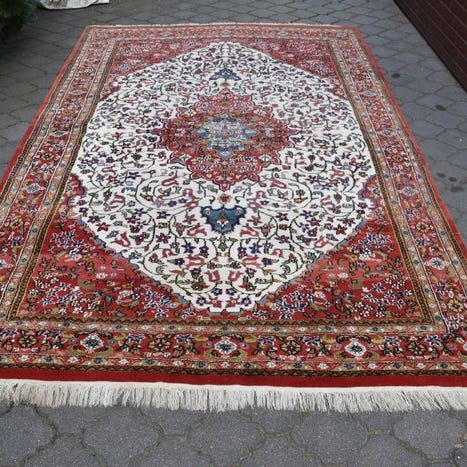 Hvert tæppe er et unikt håndværk, vævet i hånden med passion og ekspertise. Fremstillet af naturlige fibre som uld eller bomuld, det legemliggør ægthed og rigdom fra verdens tekstiltraditioner.