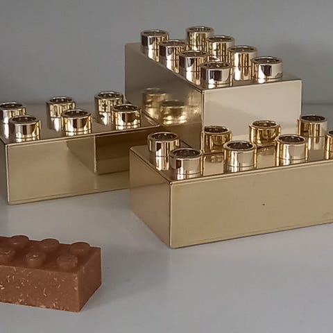 100 nye Lego 2x4 mursten i kromguld, forseglet emballage, plastik, Lego (Danmark), fra 2020 eller nyere. Klik på den blå "gå til varen" knap, for at købe eller byde på denne vare. Den samlede pris vil blive vist inden du afgiver dit bud.