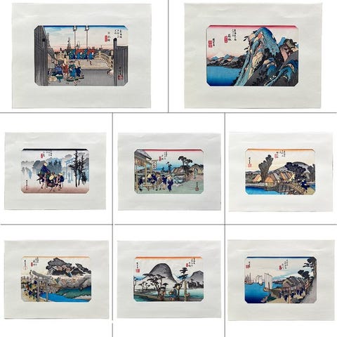 Hiroshige Utagawas Fifty-Three Stations of the Tōkaidō er en mesterværksserie bestående af 55 malerier, der skildrer de 53 stationer langs Tōkaidōen, som forbinder Edo og Kyoto, samt Nihonbashi og Sanjō-broen i Kyoto. Hans værker, især dem der skildrer regnfulde og snedækkede landskaber, er særligt fremragende.