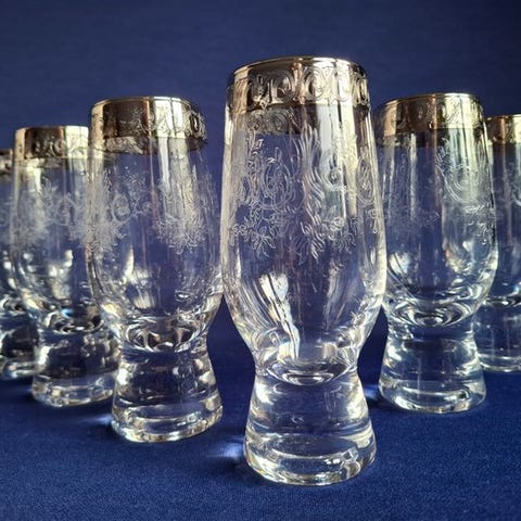 Spiritus sæt til 6 (6) - Glas, Forsølvet