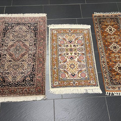 Oprindelse: Indien; håndknyttet orientalsk tæppe i Bidjar-design, 154 × 89 cm, uld på bomuld. Klik på den blå "gå til varen" knap, for at købe eller byde på denne vare. Den samlede pris vil blive vist inden du afgiver dit bud.