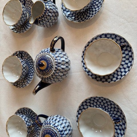 Materiale: hard-paste porcelæn. Fremstillet i Rusland af det kejserske Lomonosov Porcelænsfabrik.