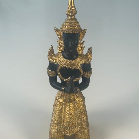 Bronze Sukunda rituel olielampe med Ganesh, Nepal, Kathmandu-dalen, det 1800–1850-tallet, dimensioner 17 × 17 × 7 cm, patineret og brugt i religiøse ceremonier; autentisk og i god stand. Klik på den blå "gå til varen" knap, for at købe eller byde på denne vare. Den samlede pris vil blive vist inden du afgiver dit bud.