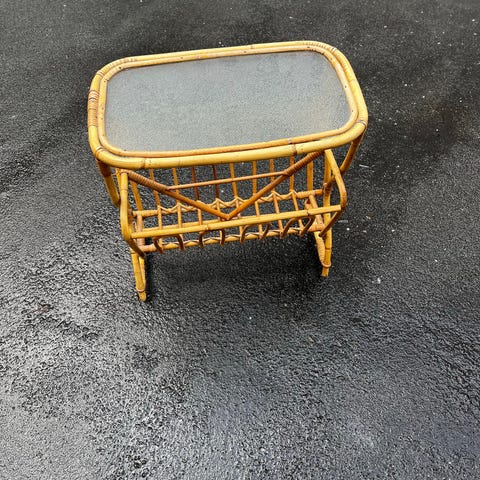 Elegant og enkel lille sofabord af italiensk manufaktur i bambus og rattan.