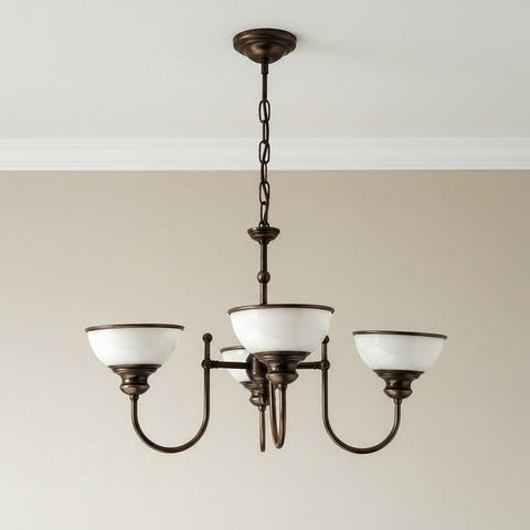 Lysekrone i patineret messing med mønster af hvede og 3 grene, alt klar til brug. Dimensioner: samlede højde 50 cm, lampehøjde 34 cm, bredde 35 cm og vægt 1,4 kg + emballage = 2 kg. Sendes med tracking.