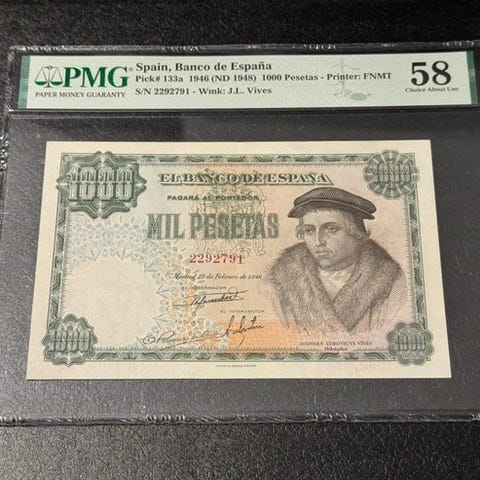 Spanien, 2 × 500 Pesetas korrelativ 1954 og 2 × 1000 Pesetas korrelativ 1965, konservering uden certifikat, afsendelse med tracking. Klik på den blå "gå til varen" knap, for at købe eller byde på denne vare. Den samlede pris vil blive vist inden du afgiver dit bud.