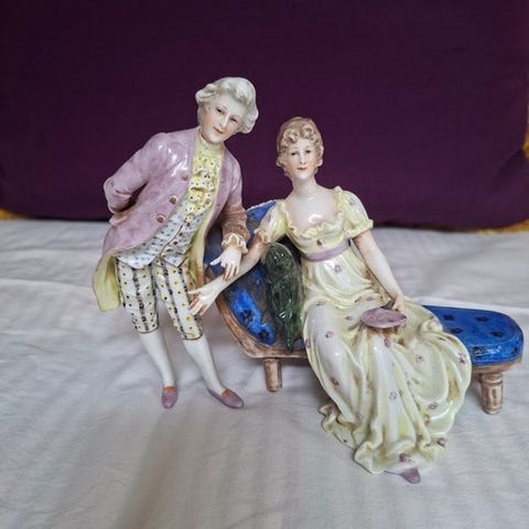 Porcelænsstripet fra C.A.L. Lucca, Italien, fra 1960’erne, bestående af en vase med håndoptrækning ur og to lysekroner, med blomster og gulddekoration; mål ca. 30 cm høj, 30 cm bred, 19 cm dyb; i god stand med mindre aldersmærker og pletter. Klik på den blå "gå til varen" knap, for at købe eller byde på denne vare. Den samlede pris vil blive vist inden du afgiver dit bud.