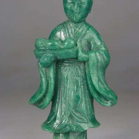 Jade Epinard, fænix-statuette fra det 20. århundrede i Jade Epinard, med titlen “Rare Statuette Sculptee Phenix Oiseau Sculpture.” Klik på den blå "gå til varen" knap, for at købe eller byde på denne vare. Den samlede pris vil blive vist inden du afgiver dit bud.