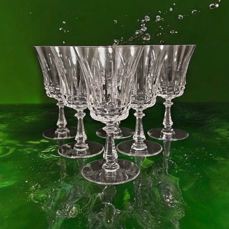 Glasene er smukt proportionerede, med et klart, strålende krystal, der fremhæver champagnens gnist. De er bevarede i fremragende stand for deres alder, uden skår eller revner, hvilket gør dem til et fremragende eksempel på velholdt vintage-krystal.