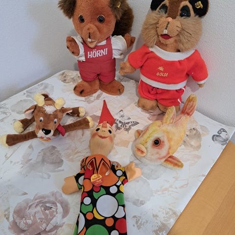 Hej, fra afviklingen af mit udstillingsskab tilbyder jeg 13 gamle Steiff-dyr.