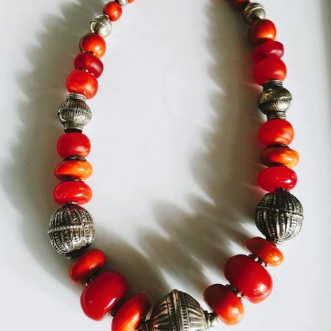 Pashtun halskæde lavet af sølv af høj kvalitet (testet) og glasperler og cabochoner.