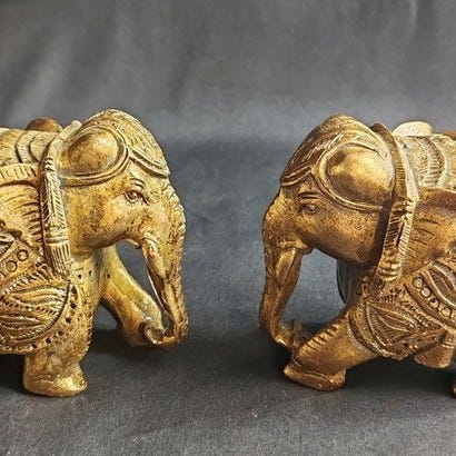 Par antikke italienske salvage-snittræfragmenter i forgyldt træ fra en gammel kirke, lavet til bogstøtter, i god brugstilstand, mål: 23 × 12 × 12 cm. Klik på den blå "gå til varen" knap, for at købe eller byde på denne vare. Den samlede pris vil blive vist inden du afgiver dit bud.
