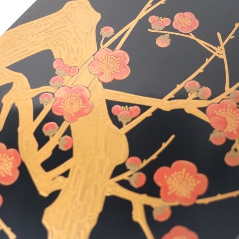 Ydersiden er smukt dekoreret med et pæonemotiv, og blomstens centrum prydes af delikate perlemor-inlæg. Hvert stykke er omhyggeligt håndlavet af dygtige håndværkere. Fubakoen kommer med sin originale opbevaringsboks.