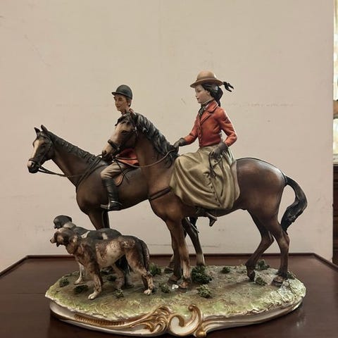 Faience hundeskulptur fra Desvres, Frankrig, 1950, ikke underskrevet, i god stand, blank glasur, håndmalet dekoration, gul halskæde, sjældent model med svovløjne; mål: 26 cm høj, 12 cm bred, 25 cm dyb; vægt 1,267 kg. Klik på den blå "gå til varen" knap, for at købe eller byde på denne vare. Den samlede pris vil blive vist inden du afgiver dit bud.