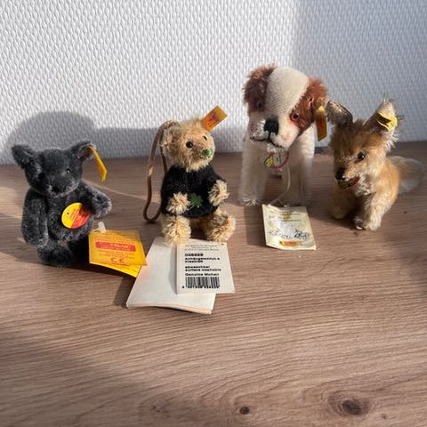 To Steiff-bjørne, Steiff Rose og Rosey. Den sidste laver lyd. I god stand.