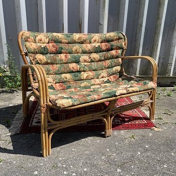 Italiensk midt-udgammel sofa/sofabed i bambus og rattan med originalt sengeramme, 205 cm bred, 85 cm dyb og 65 cm høj, lavet af bambus, stof og metal, oprindelse Italien, dateret til 1950–1960, i god brugt stand med mindre aldersmærker og pletter, aftagelige madras- og puder covers. Klik på den blå "gå til varen" knap, for at købe eller byde på denne vare. Den samlede pris vil blive vist inden du afgiver dit bud.