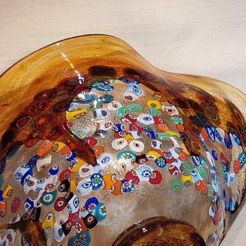 Udført med omhyggeligt håndværk af glasmestrene fra Murano, forener tradition og innovation i en skabelse, der fanger blikket og fantasien fra første øjeblik takket være Opalino-stilen i glasset, som opnås ved at forene den traditionelle glasbearbejdning fra Murano med idéen fra moderne kunstnere og