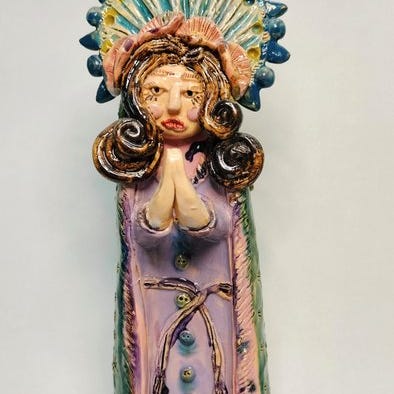 Manufacture Saint Clement - Lemanceau - Skulptur, “Femme à la biche” - 33 cm ...