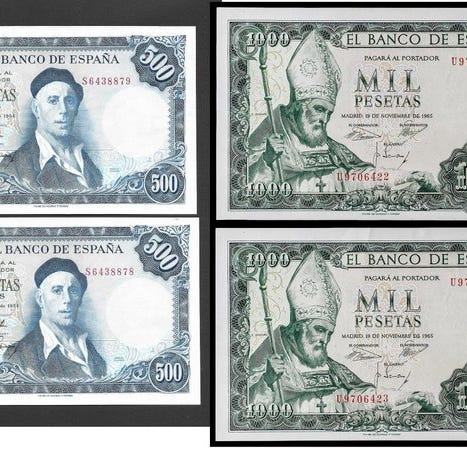 Banco de España 1000 pesetas fra 1946 med Luis Vives, vurderet PMG Choice About Uncirculated 58 (certifikationsnummer 1910029-044). Klik på den blå "gå til varen" knap, for at købe eller byde på denne vare. Den samlede pris vil blive vist inden du afgiver dit bud.