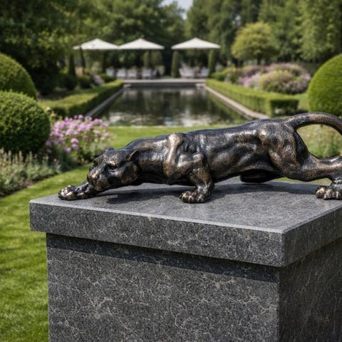 Denne Stafford Dog er håndlavet af støbejern med en bronzefarve.