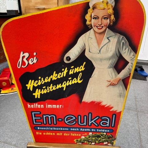Nivea Pin Up reklameskilt, udgivet af Bayer, ca. 1960, Tyskland, metal, 84 × 47 cm, original/officiel, i god brugt stand med mindre tegn på alderdom og pletter. Klik på den blå "gå til varen" knap, for at købe eller byde på denne vare. Den samlede pris vil blive vist inden du afgiver dit bud.