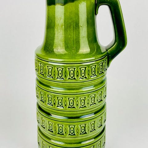 Scheurich Keramik WGP XL fat lava vase, model 517-38, 38 cm høj, 20 cm i diameter, flerfarvet keramikvase fra Vesttyskland, periode 1960’erne–1970’erne, mid-century modern stil, i god vintage stand med mindre tegn på alderdom og små hårskår i halsen; ikke sendt til Amerika. Klik på den blå "gå til varen" knap, for at købe eller byde på denne vare. Den samlede pris vil blive vist inden du afgiver dit bud.