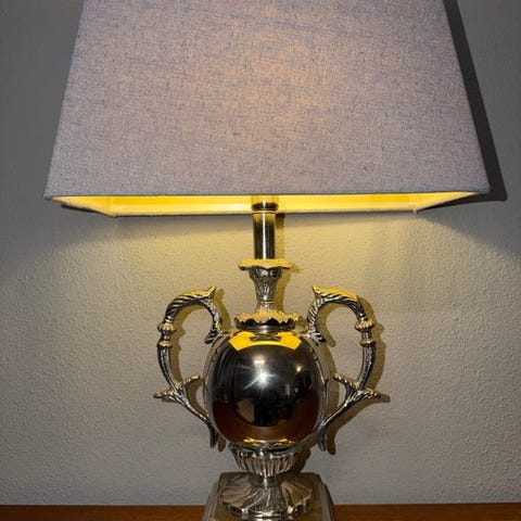 Par store antikke italienske Empire-krystalbordlamper i messinglegering i gylden farve, dateret 1920-1930, hver lampe med to fatninger og fire fatninger i alt, mål: 40 cm høje, 17 cm brede og 17 cm dybe, i god stand med små aldersrelaterede tegn og ikke i brug, ledningsændring påkrævet. Klik på den blå "gå til varen" knap, for at købe eller byde på denne vare. Den samlede pris vil blive vist inden du afgiver dit bud.