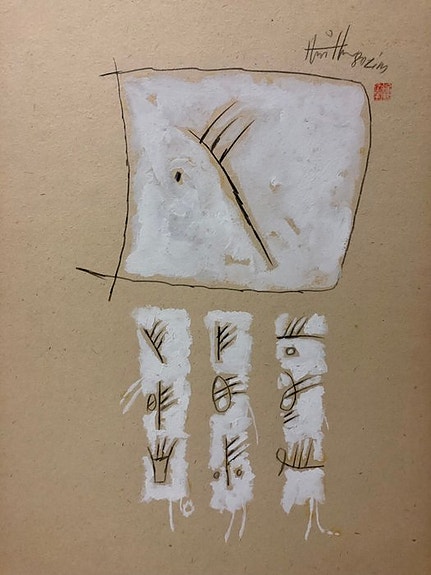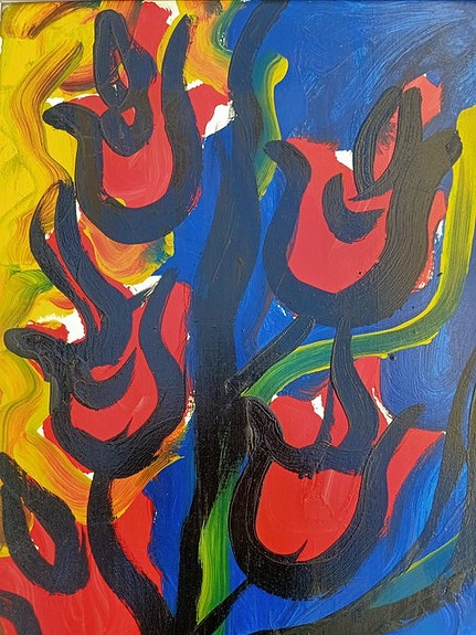 Kunstværket er dristigt og dystopisk: kæmpe robotfigurer dominerer et stiliseret bylandskab, gengivet i en iøjnefaldende orange- og sort palet. Futuristisk infrastruktur, overdreven skala og tegneserie-præcision giver billedet en grafisk, næsten sci-fi kvalitet.