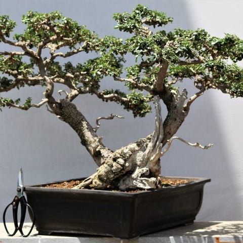 Oliventræ-bonsai i perfekt helbred og i stand til at bære frugt.