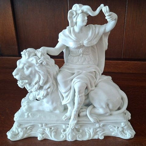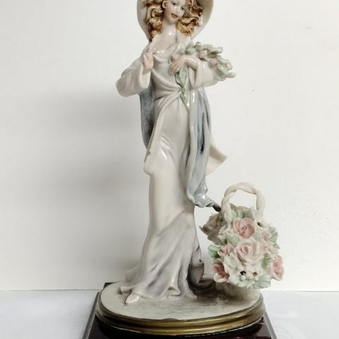 Capodimonte porcelænsstatuette 'Lady and Gentleman on horseback' af Zani, Italien, ca. 1950'erne, i fremragende stand, dimensioner 36 cm bred, 33 cm høj, 20 cm dyb. Klik på den blå "gå til varen" knap, for at købe eller byde på denne vare. Den samlede pris vil blive vist inden du afgiver dit bud.