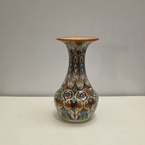En enkelt maiolika-keramikmidterstykke, 34 cm højt, 38 cm bredt og 20 cm dybt, med metallisk lustre-dekoration typisk for Gualdo Tadino og underskrevet Alberto Rubboli, Italien. Klik på den blå "gå til varen" knap, for at købe eller byde på denne vare. Den samlede pris vil blive vist inden du afgiver dit bud.