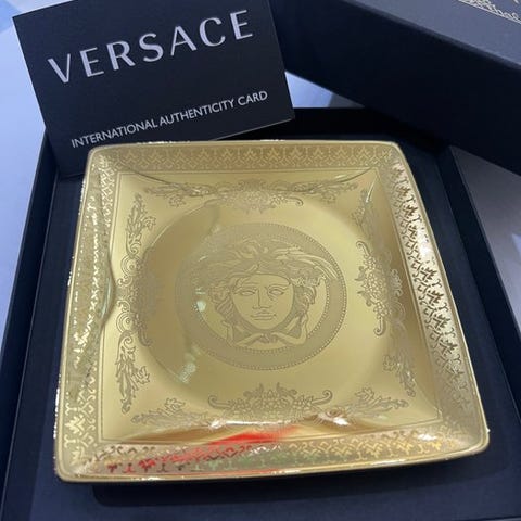 Rosenthal Versace Medusa Rot brødtallerken af porcelæn, diameter 18 cm, højde 1,8 cm, vægt 235 g, fremstillet i Tyskland, ny og i originalemballage. Klik på den blå "gå til varen" knap, for at købe eller byde på denne vare. Den samlede pris vil blive vist inden du afgiver dit bud.