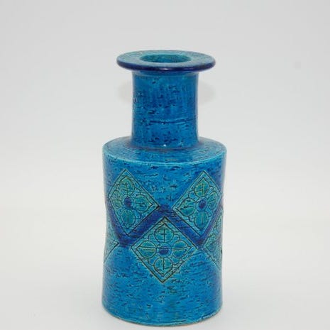 Keramikvase tegnet af Aldo Londi/Bitossi i mønsteret 'Rimini Blu' for Sardartist Castelsardo i 60'erne og 70'erne. Genstanden måler 12 cm i højden, diameter 13 cm. Vægt 620 g.