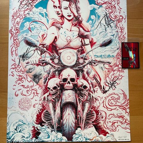 Et virkelig fantastisk og autentisk stykke musikhistorie for enhver fan af det legendariske progressive rockband, Pavlov's Dog. Dette er en original koncertplakat fra deres "Live and Unleashed" europæiske turné i 2011, håndsigneret af seks medlemmer af bandet.