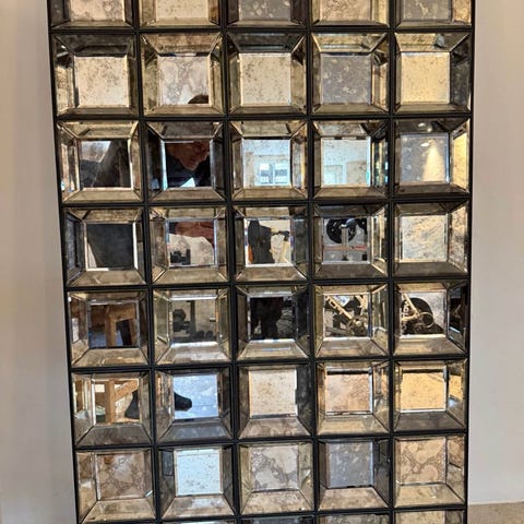 Dekorativt spejl i forgyldt støbejern, Art Nouveau-stil, en liggende kvinde, fremstillet i Frankrig, anslået periode 1970–1980; ydre mål 49,5 cm høj, 28,5 cm bred, dybde 1,5 cm; indre mål 29 × 19 cm; vægt 3,185 kg; tilstand: god med aldersrelateret brugsspor og pletter. Klik på den blå "gå til varen" knap, for at købe eller byde på denne vare. Den samlede pris vil blive vist inden du afgiver dit bud.