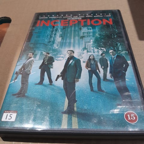 Inception dvd film. Udgivelse af spillefilmen Inception på dvd. Forsiden viser filmens hovedpersoner i en byscene. Velegnet til afspilning på dvd-afspillere, computere med dvd-drev eller lignende udstyr, der understøtter dvd-formatet.